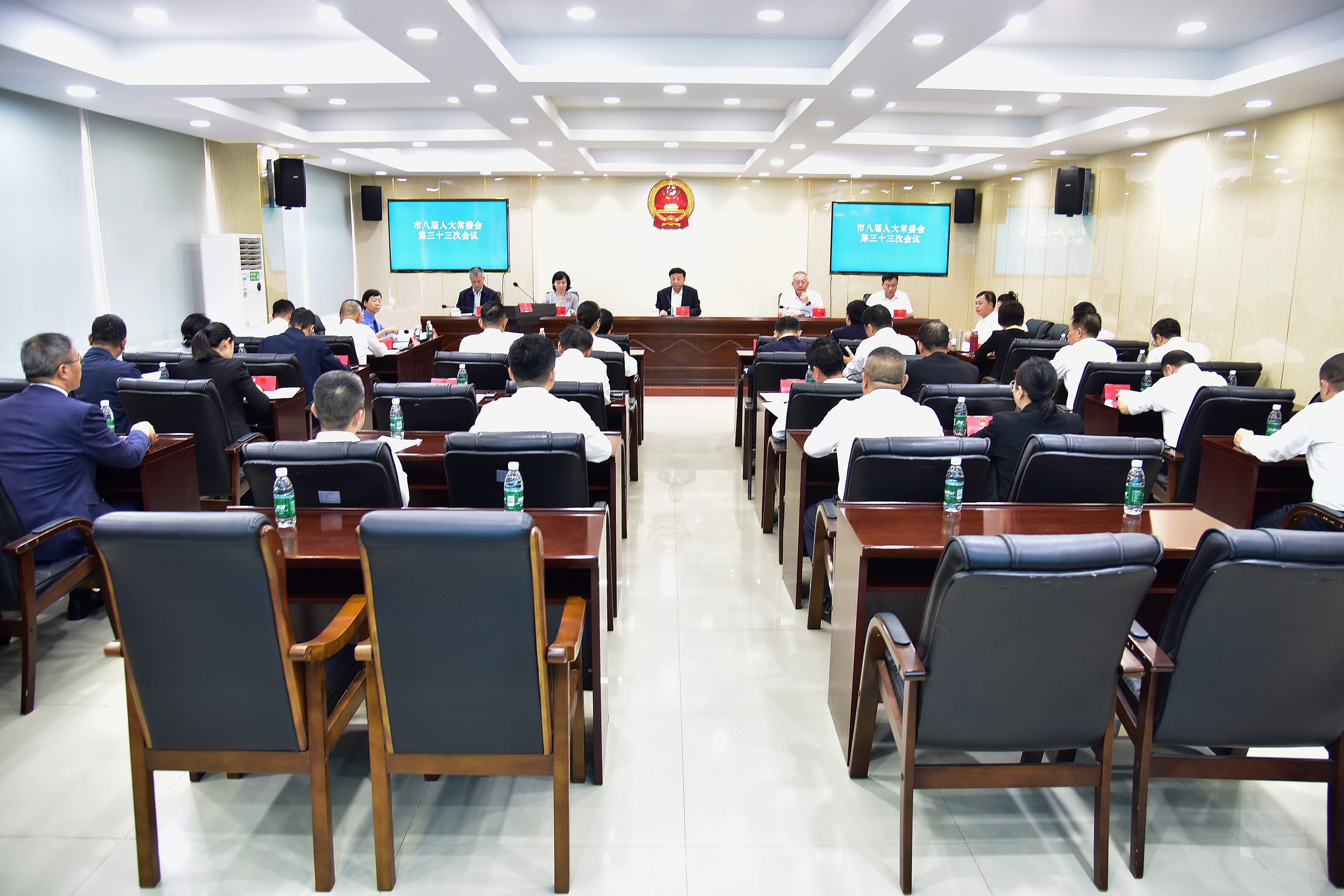 12月15日,市人大常委会主任刘耿主持召开市八届人大常委会第三十三次会议。市人大常委会副主任王晓、符婉、张秀标,市人大常委会秘书长吴钟斌等常委会组成人员出席会议。会议应到37人,实到27人,符合法定人数。