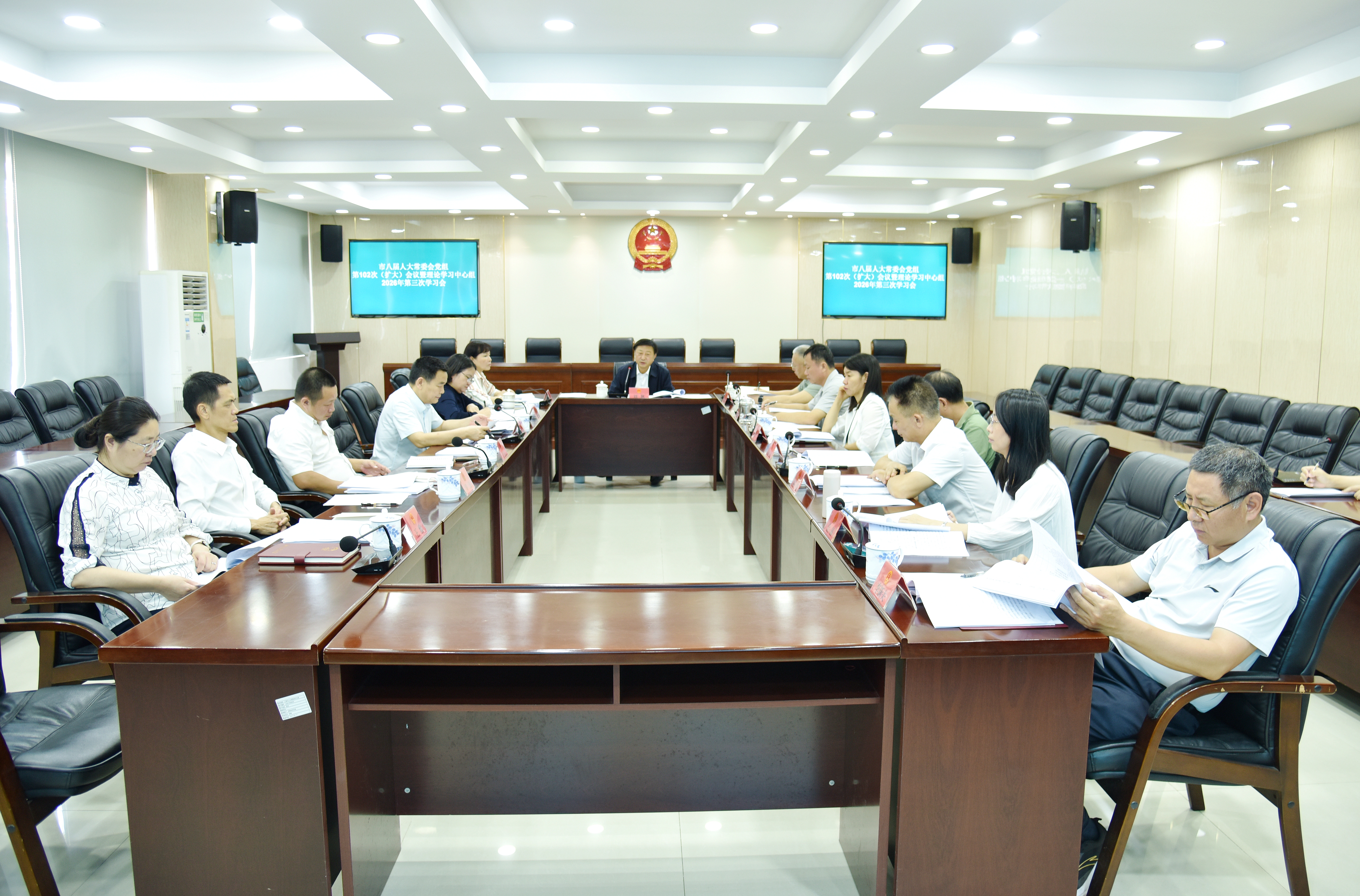 3月18日,市八届人大常委会党组第102次(扩大)会议暨理论学习中心组2026年第三次学习会召开,传达学习习近平总书记关于树立和践行正确政绩观学习教育的重要讲话和重要指示批示精神,传达学习习近平总书记在全国两会期间的重要讲话精神和全国两会精神,以及中央、省委、市委有关文件精神,研究部署贯彻落实措施。市人大常委会党组书记、主任刘耿主持会议并讲话,常委会领导班子成员依次作学习交流发言。